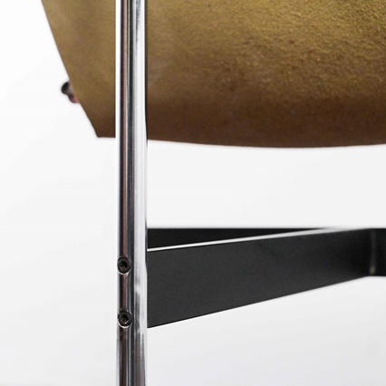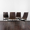 Set of four 3LC chairs in chocolate brown saddle leather and chrome plated metal deigned in 1952/1953 by D. Kelly, W. Katavolos & R. Littel for Laverne Originals NYC produced by ICF De Padova Italy. Dimensions : width 59 cm , depth 58 cm , height 80 cm