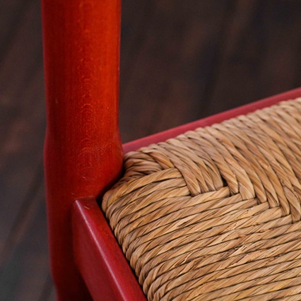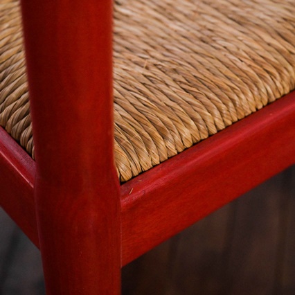 Set of 2 Carimate chairs in varnished red stained wood and straw . Dimensions : height 75 cm , depth 49 cm , width 51 cm