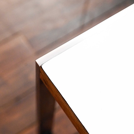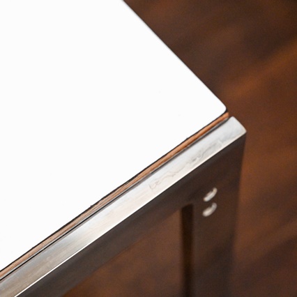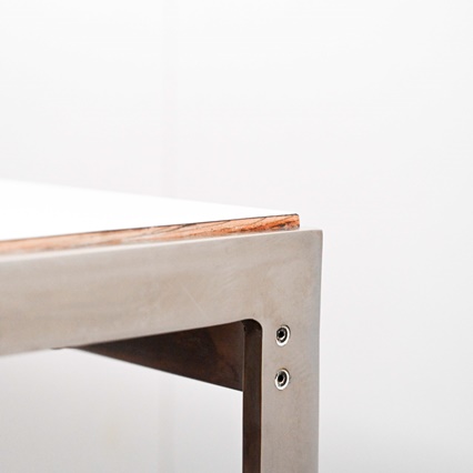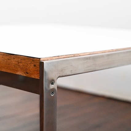 SQAURE COFFEE TABLE WITH TOP IN WHITE LAMINATE AND METAL FROM THE 1970'S