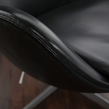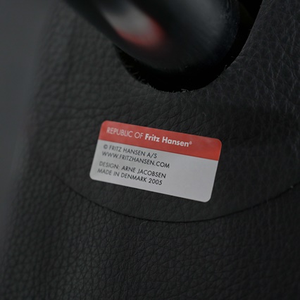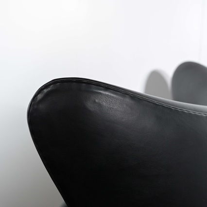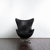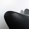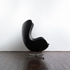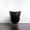 Egg Chair with 4 star based polished aluminium and adjustable tilt mechanism, shell in polyurethane foam with glass fibre reinforcement reupholstered in black leather manufactured by Fritz Hansen in 2005. Dimensions : width 86 cm , depth 79-95 cm , height 107 cm , seta height 37 cm