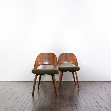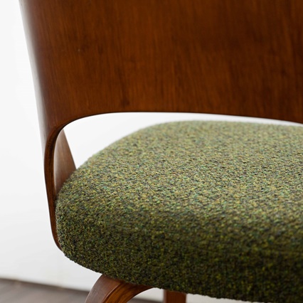 Set of 2 Executive Chairs M72 in teak wood and green Kvadrat fabric produced in the 1960's by De Coene for Knoll International. Dimensions : width 58 cm , depth 48 cm , height 80 cm