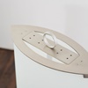 Table Lamp Pirellina manufactured by Fontana Arte with 2 diffusors made of curved pressed glass sitting on a nickel plated brass frame. The lamp is inspired by the Pirelli tower built by Ponti in Milan in 1956 . Dimensions : width 38 cm , depth 17 cm , height 70 cm